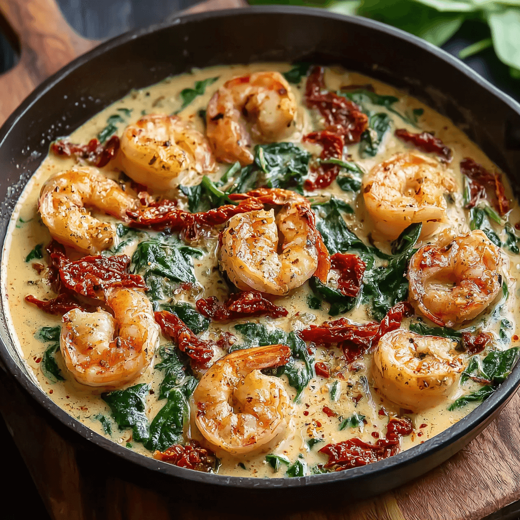 This Creamy Tuscan Shrimp delivers a restaurant-quality meal with minimal effort. Succulent shrimp are pan-seared and bathed in a rich garlic cream sauce, studded with sun-dried tomatoes and wilted spinach. It’s one of the most rewarding and flavorful dishes we feature here at Bites by Lila.