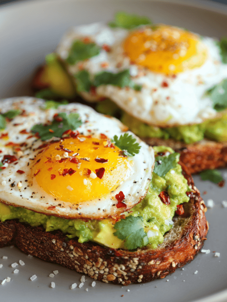 - Top with Eggs: Place the cooked eggs on top of the avocado toast.