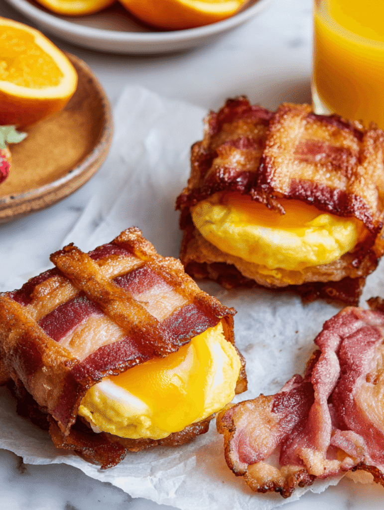 The Bacon Weave Breakfast Sandwich is a fun and flavorful way to enjoy breakfast. With its crispy bacon base and hearty filling, this sandwich is sure to be a hit at your breakfast table. Enjoy this delightful recipe!