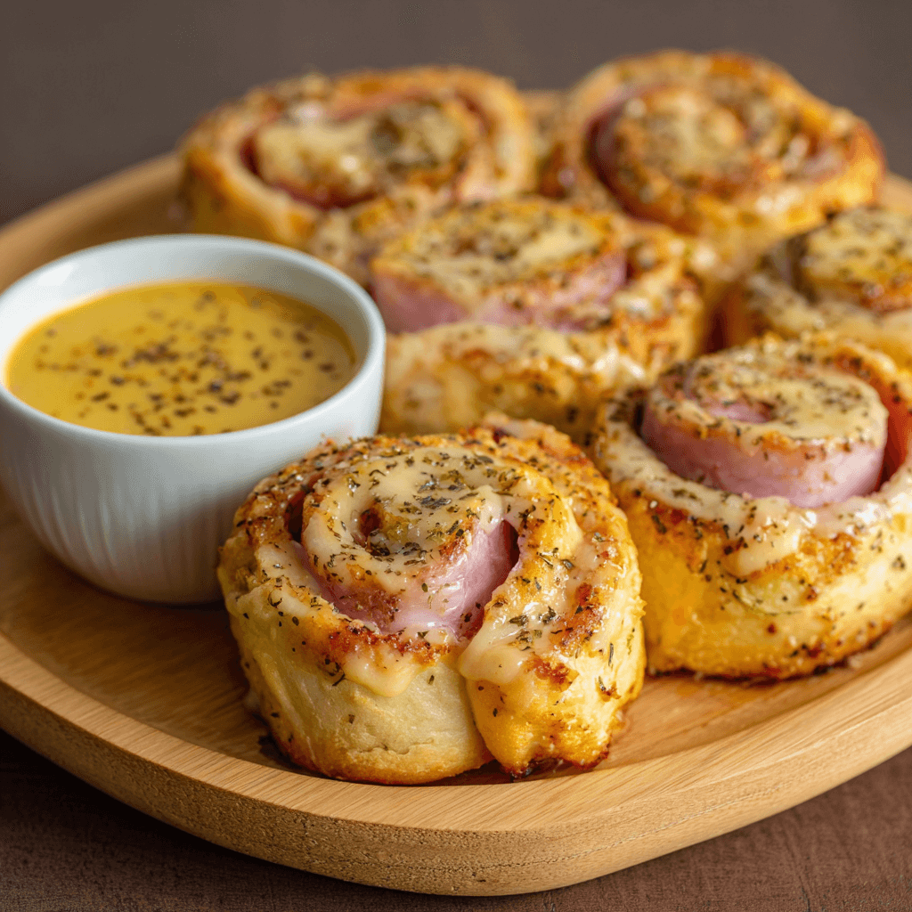 Baked Ham and Cheese Rolls with Honey Mustard Sauce are a delightful treat that combines savory flavors with a sweet and tangy dip. Perfect for any occasion, these rolls are sure to be a hit!