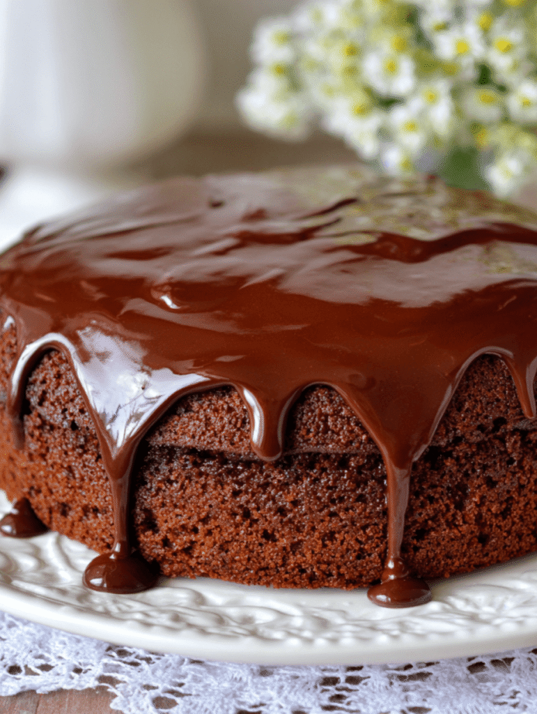 - Frost the Cake: Once the cake is completely cool, pour the chocolate ganache over the top, allowing it to drip down the sides.