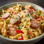 Creamy Smoked Sausage Pasta is a hearty and flavorful dish that combines tender pasta with smoky sausage, a creamy sauce, and vibrant vegetables. This recipe is perfect for a quick weeknight dinner that the whole family will love!