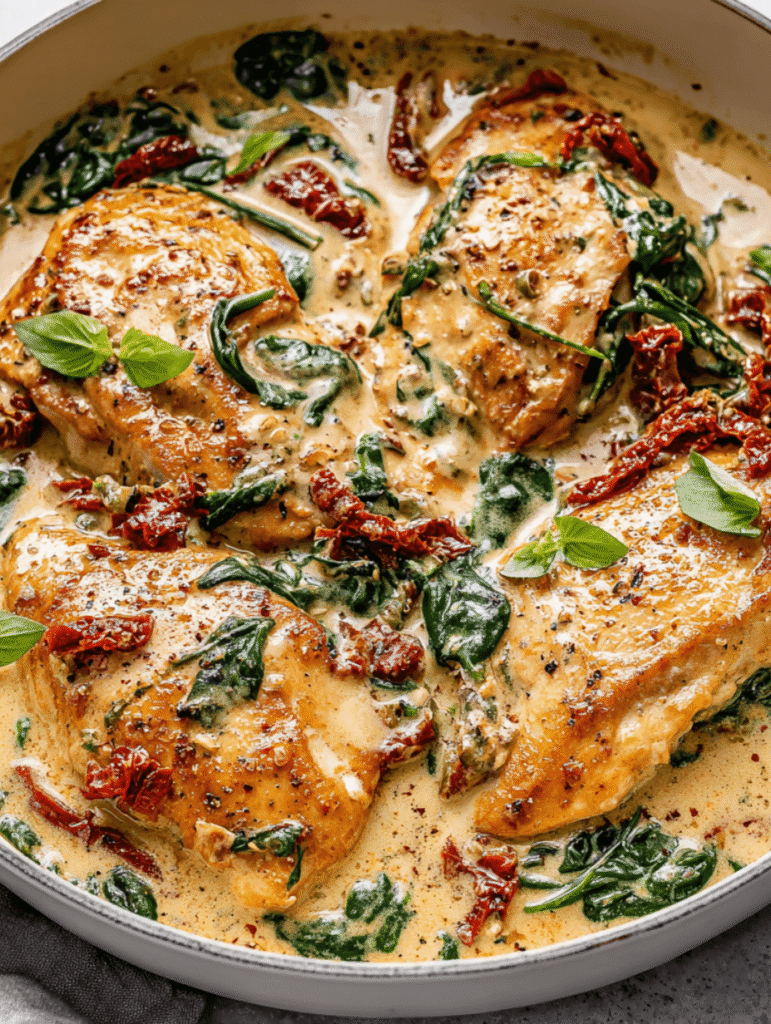Creamy Tuscan Chicken is a rich and flavorful dish that’s quick to prepare and sure to impress. With its creamy sauce and tender chicken, it’s perfect for a cozy dinner at home!