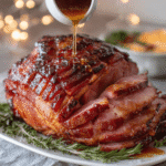 - Pour Glaze: Pour the maple glaze over the ham, ensuring it’s evenly coated. Use a brush to spread some of the glaze into the scored areas if desired.