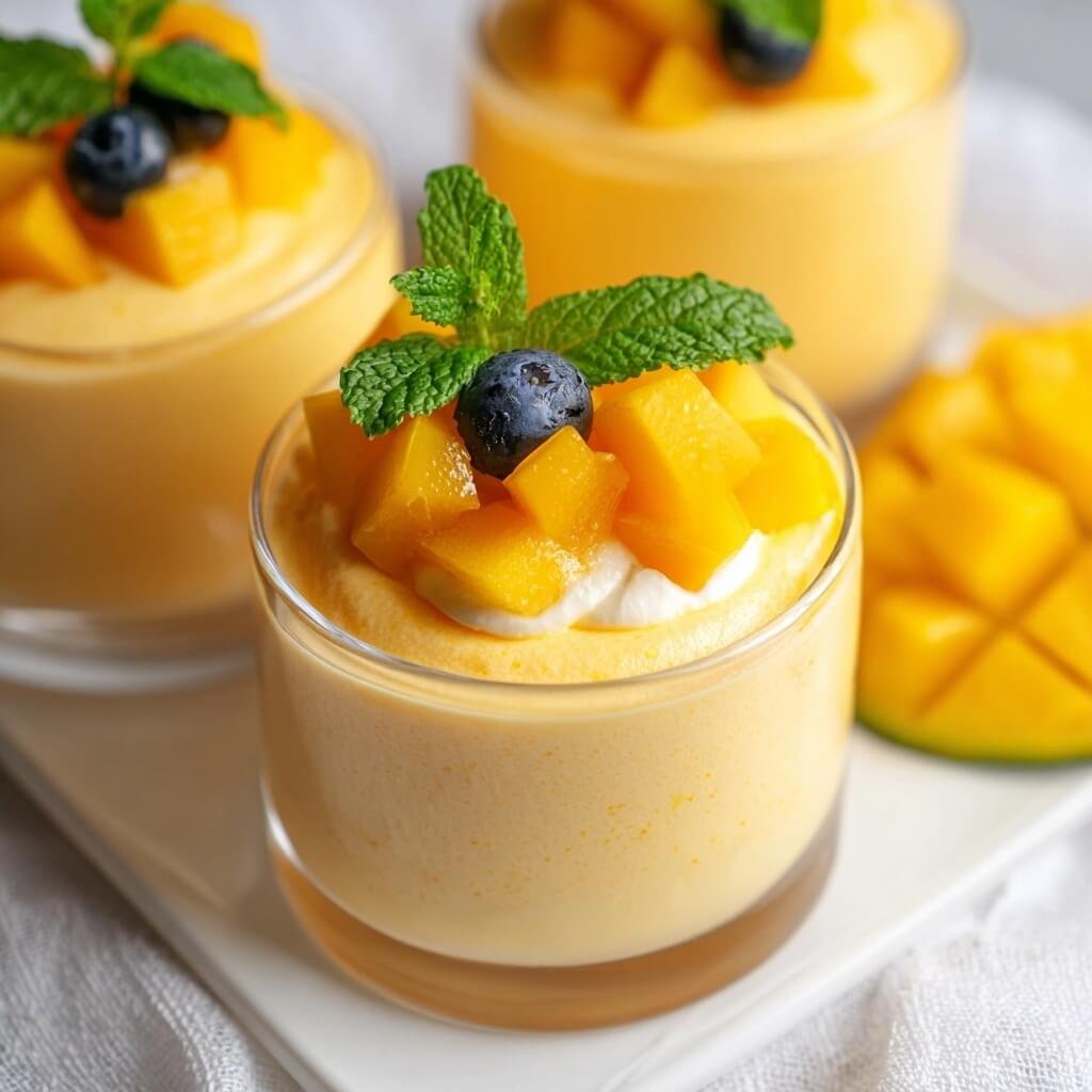 This mango mousse is airy yet rich, served in individual cups that make it ideal for entertaining or quick snacks. The light, fluffy texture is easy to achieve and rewarding for all skill levels — no complicated steps, just fresh mango flavor captured perfectly.