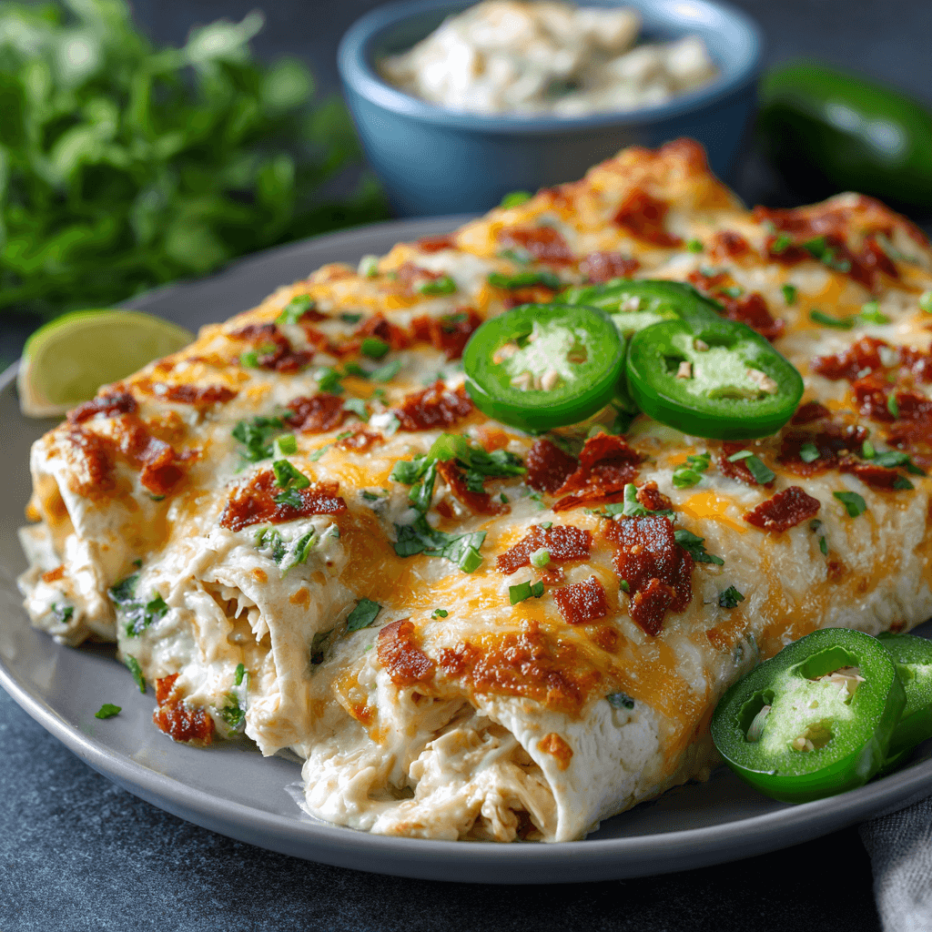 Jalapeño Popper Cheesy Chicken Enchiladas are a delicious and fun twist on traditional enchiladas, bringing together the creamy and spicy flavors of jalapeño poppers with hearty chicken. This dish is perfect for gatherings or a cozy family dinner, and it’s sure to be a hit with everyone!