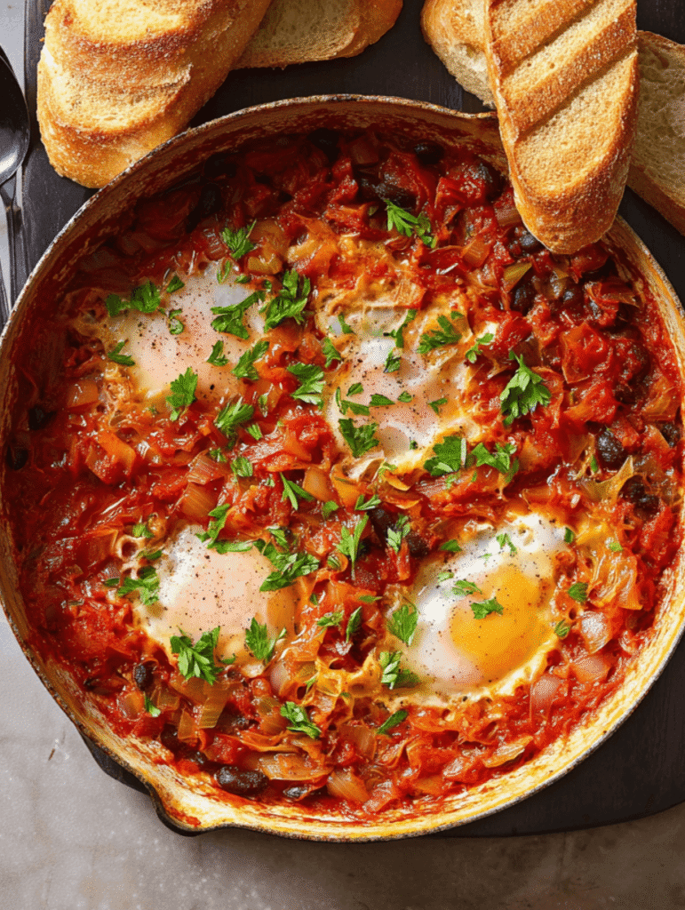 Kimchi and Beans Shakshuka is a flavorful twist on the traditional North African and Middle Eastern dish. This version combines spicy kimchi and hearty beans with poached eggs in a rich tomato sauce, creating a delicious and satisfying meal that’s perfect for breakfast, brunch, or dinner.