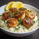 Lemon Butter Scallops Over Parmesan Risotto is an elegant and flavorful dish that combines perfectly seared scallops with creamy, rich risotto. The bright flavor of lemon butter enhances the scallops, making it a delightful meal for special occasions or a luxurious dinner at home.