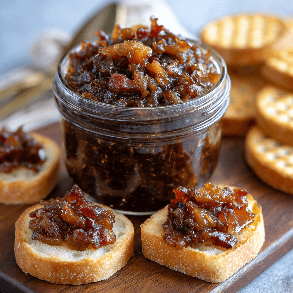 Maple Bourbon Bacon Onion Jam is a rich, sweet, and savory condiment that combines caramelized onions, crispy bacon, maple syrup, and bourbon. This jam is perfect for spreading on sandwiches, burgers, or serving alongside cheese and charcuterie boards.