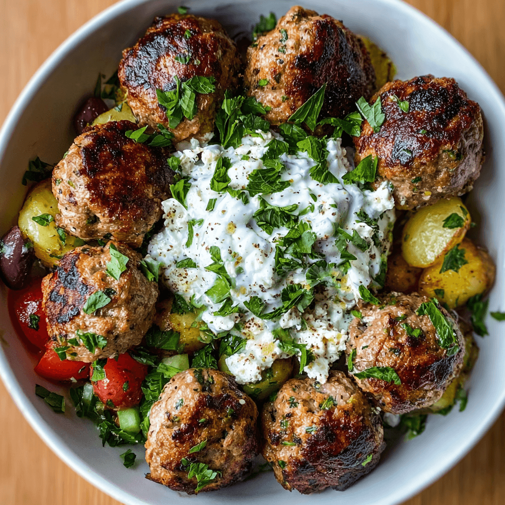 • On a Salad: Create a “deconstructed” gyro salad with a base of crisp romaine, Kalamata olives, red onion, and cucumber, topped with the meatballs.
