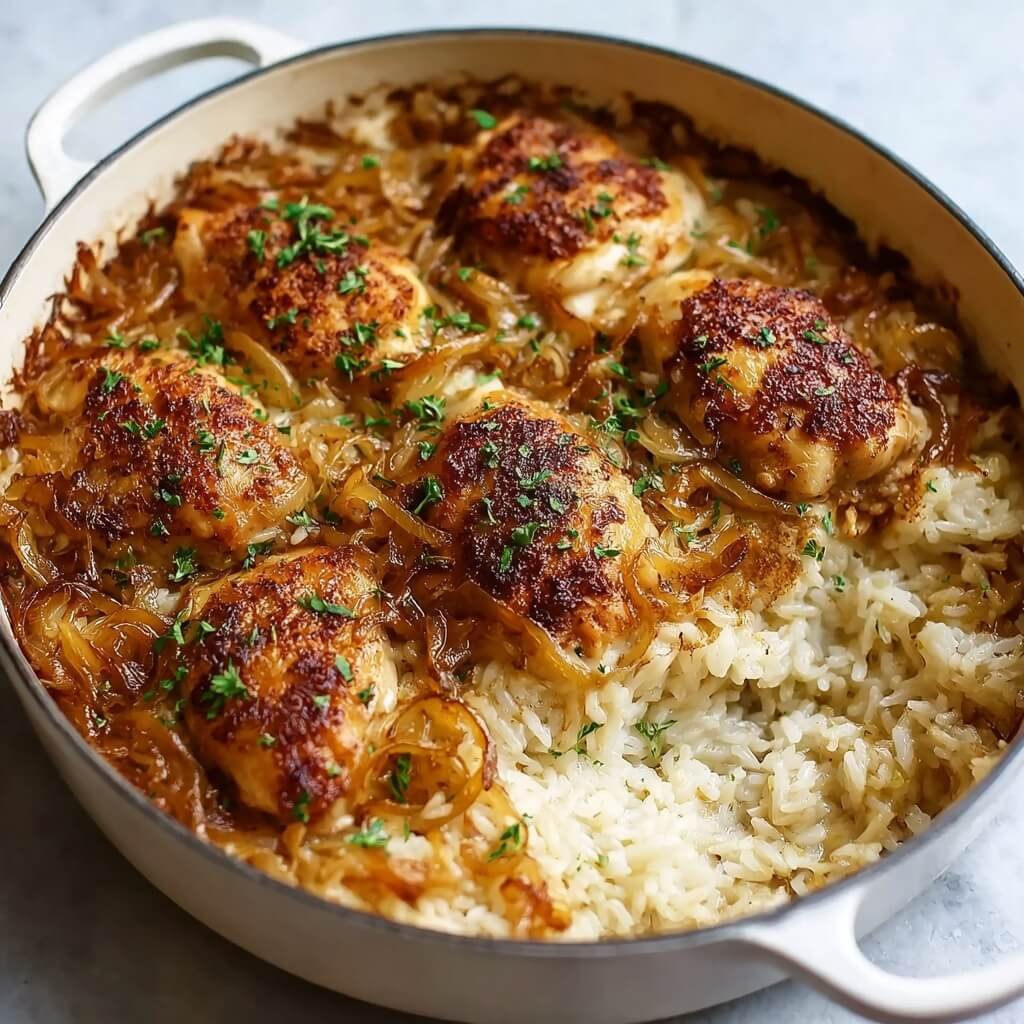 One-Pot French Onion Chicken Rice Dinner Recipe for Simple Weeknight Comfort