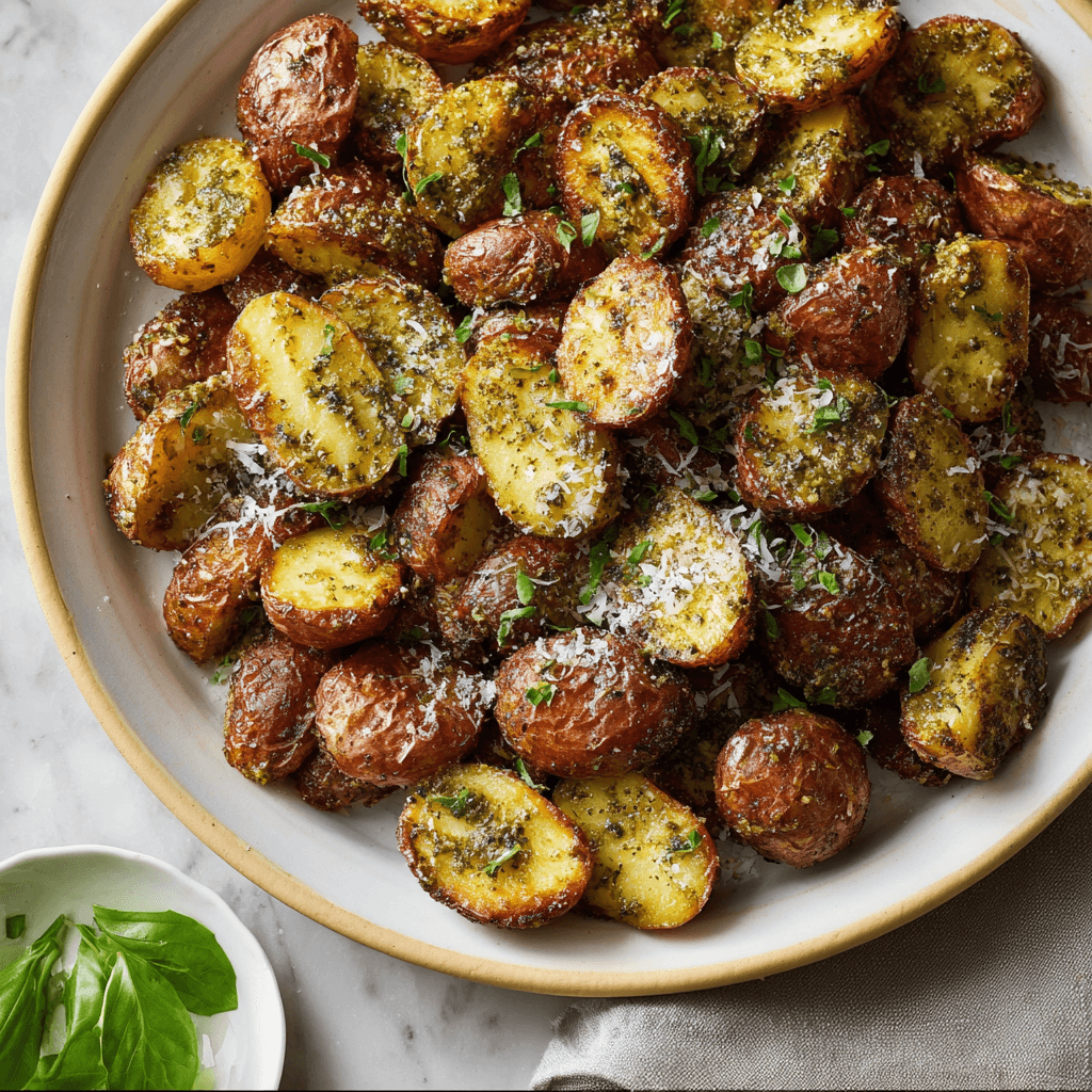 Parmesan Pesto Roasted Potatoes are a delicious and easy side dish that combines crispy roasted potatoes with the rich flavors of pesto and Parmesan cheese. This dish is perfect for complementing any main course and is sure to impress your family and friends!