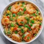 Shrimp & Cauliflower Fried Rice is a delicious and healthy alternative to traditional fried rice. This dish combines succulent shrimp with cauliflower rice, colorful vegetables, and savory seasonings, making it a perfect low-carb meal that’s both satisfying and nutritious. It’s quick to prepare, making it ideal for busy weeknights!