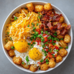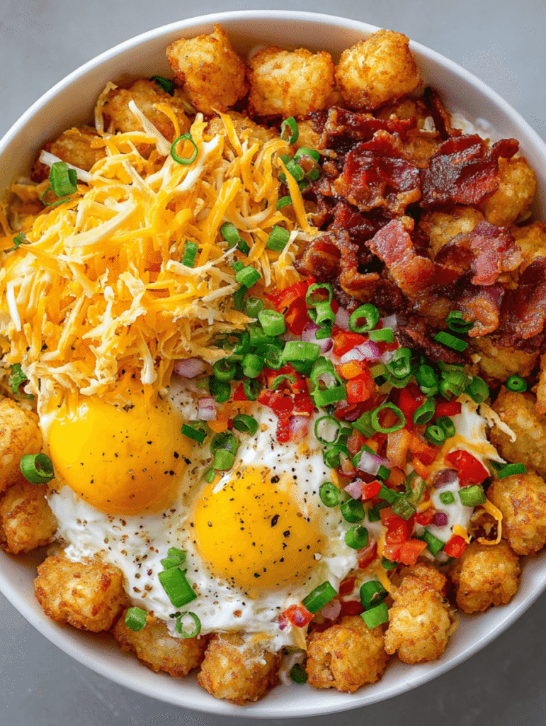 The Ultimate Tater Tot Breakfast Bowl is a hearty and satisfying dish that combines crispy tater tots with a variety of breakfast favorites. This delicious bowl is perfect for brunch or a comforting breakfast, packed with flavor and texture!