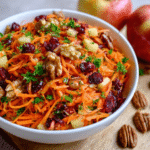 Vibrant Apple Cranberry Carrot Salad is a refreshing and colorful dish that combines the crispness of apples, the sweetness of carrots, and the tartness of cranberries. This salad is perfect for any season and makes a great side dish for gatherings, picnics, or as a healthy snack. It’s not only delicious but also packed with nutrients!
