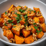 Walnut Maple Roasted Sweet Potatoes are a deliciously sweet and nutty side dish that combines the natural sweetness of sweet potatoes with the rich flavors of maple syrup and crunchy walnuts. This dish is perfect for fall gatherings, holiday meals, or as a comforting addition to any dinner!